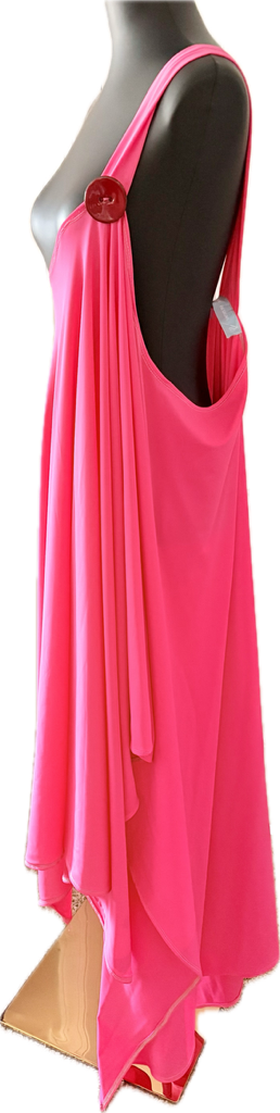 100% Polyester Hot Pink Asymmetrical Dress w/One Shoulder Strap and Button